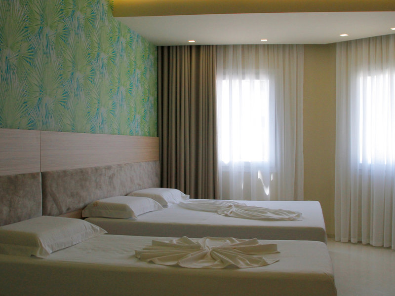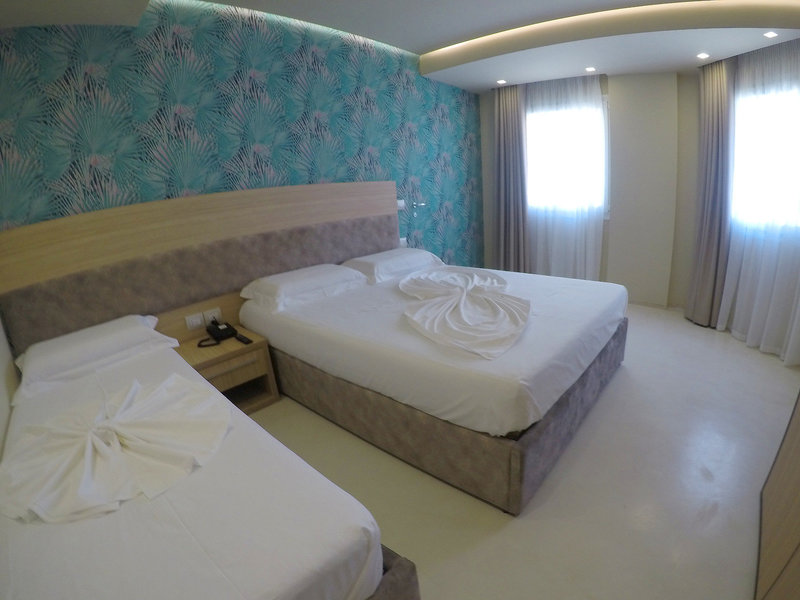 - Štvorlôžková izba s balkónom (DZX3), nefajčiarska izba, v hlavnej budove, morská strana, výhľad na more, výhľad na vnútorné nádvorie, cca 25 m², posledná kompletná rekonštrukcia v roku 2018, celkový počet izieb v tomto type izby: 9, 2 samostatné postele, 1 manželská posteľ, klimatizácia: individuálne nastaviteľná, kúrenie: individuálne nastaviteľná, podlaha: dlažba, trezor, písací stôl, minibar, telefón, Internet: WLAN/WiFi: zadarmo, TV: plochá obrazovka, izbová služba, vaňa alebo sprcha, sprcha, papuče, sušič vlasov, balkón alebo terasa