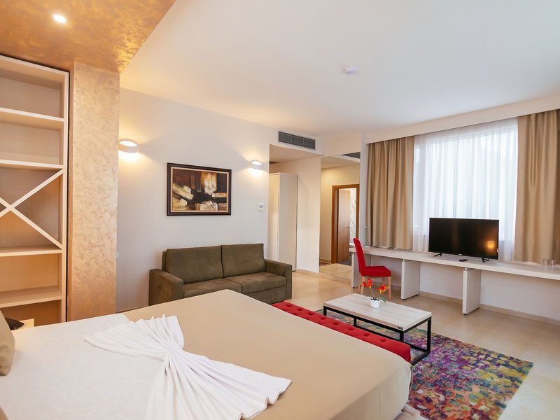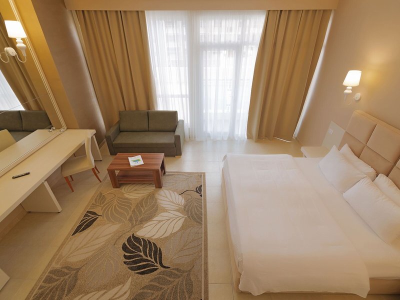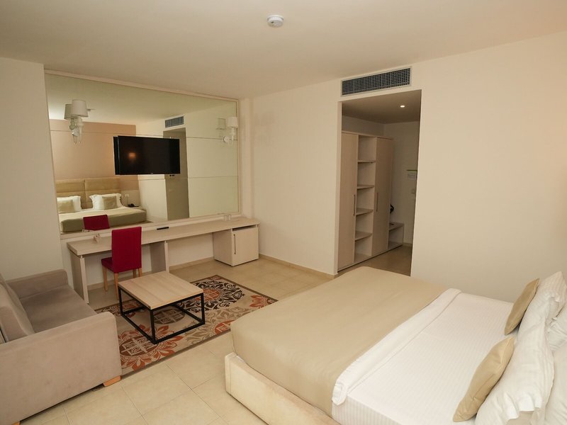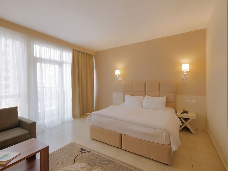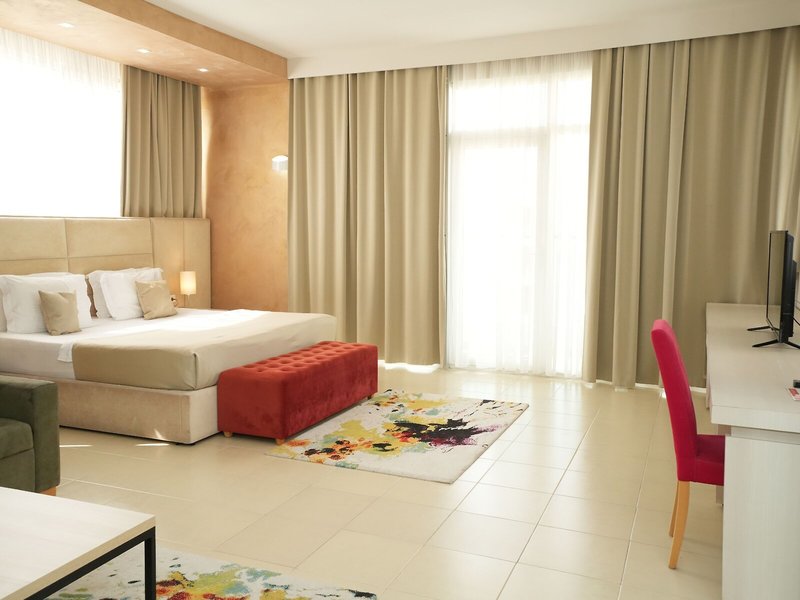 Ubytovanie: Klimatizácia a kúrenie zabezpečujú príjemnú vnútornú klímu. Balkón je štandardom vo väčšine izieb. Hostia sa môžu pohodlne vyspať na manželskej posteli. Na požiadanie je možné si vyžiadať prístelky. K dispozícii je aj trezor a minibar. Štandardom je aj chladnička. Telefón, TV a Wi-Fi zabezpečujú maximálne pohodlie počas dovolenky. K dispozícii je aj kúpeľňa so sprchovacím kútom, sušičom vlasov a telefónom. K dispozícii sú aj bezbariérové izby s bezbariérovou kúpeľňou.