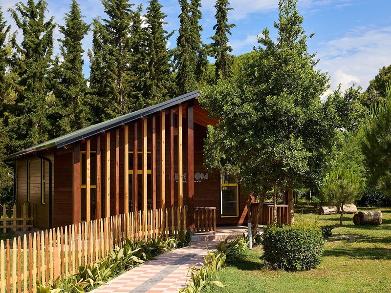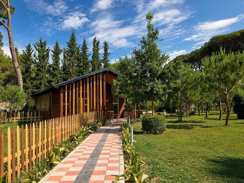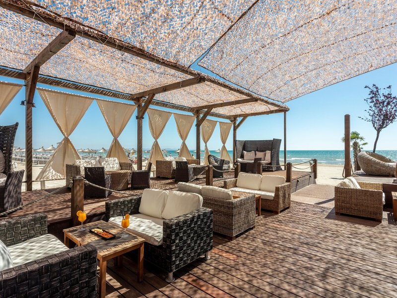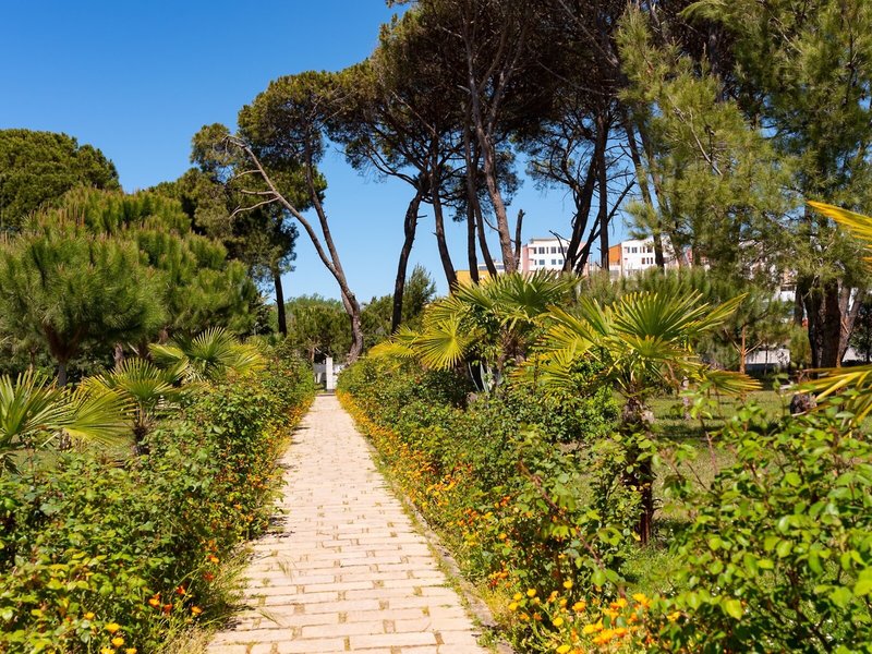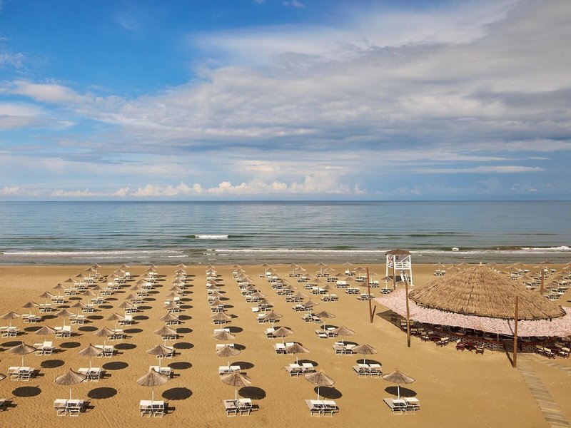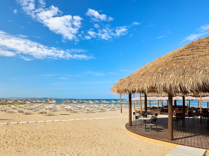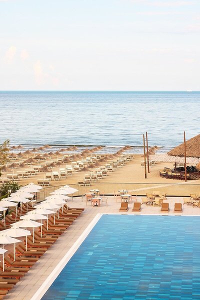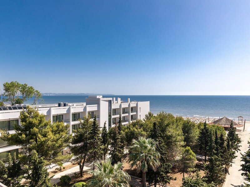Lage & Umgebung Die stilvolle Hotelanlage befindet sich direkt am Strand von Durres. Zur Hafenstadt Durres, in der sich das historische römische Amphitheater besichtigen lässt, sind es etwa 8 km. Die albanische Hauptstadt Tirana mit ihrer farbenfrohen Architektur ist etwa 40 km entfernt.