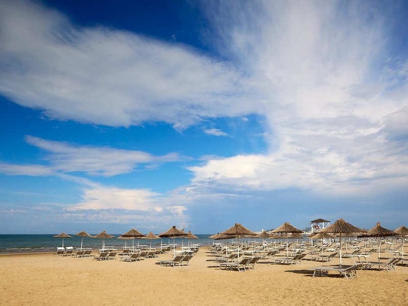 - Strand: Sand, Strandlänge: ca. 8 km, öffentlich, Liegen: gegen Gebühr, Sonnenschirme: gegen Gebühr