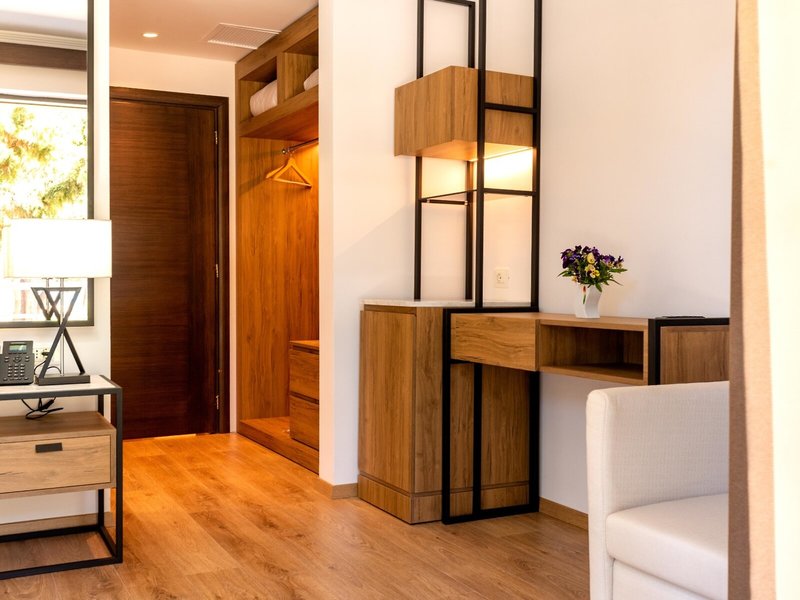 - Superior Room Limited Sea View (DZM1), Doppelzimmer, Nichtraucherzimmer, Neubau, Meerblick, eingeschränkter Meerblick, Gesamtanzahl der Räume in diesem Zimmertyp: 1, Aufteilung wie folgt: 1 Schlafzimmer, 1 Doppelbett, Klimaanlage: ohne Gebühr, saisonabhängig, individuell regelbar, Heizung: saisonabhängig, individuell regelbar, Fußboden: Laminat, Safe: ohne Gebühr, Schreibtisch, Kaffee-/Teezubereiter, Minibar: gegen Gebühr, Softdrinks: gegen Gebühr, Wasser: gegen Gebühr, Minibarauffüllung: täglich, Internet: WLAN/WiFi: ohne Gebühr, Fernseher: Flatscreen, im Schlafzimmer, Dusche, WC, Föhn, Balkon oder Terrasse: mit Sitzgelegenheit