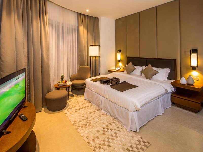 So wohnen Sie: In den Zimmern gibt es eine Küche und ein Badezimmer, für angenehmes Raumklima sorgt eine Klimaanlage. Die Zimmer verfügen über ein Doppelbett oder ein Kingsize-Bett. Zustellbetten können angefordert werden. Außerdem sind ein Safe, eine Minibar und ein Schreibtisch verfügbar. Eine Tee-/Kaffeemaschine zählt ebenfalls zur Standardeinrichtung. Hinzu kommen ein Bügelset und eine Hosenpresse. Für optimalen Komfort sorgen ein Telefon, ein TV-Gerät mit Satelliten-/Kabelempfang, ein Radio, ein Steckdosenadapter, ein Wecker und WiFi (ohne Gebühr). Zu den Vorzügen der Zimmer gehören Hausschuhe. Im Badezimmer, mit einer Dusche ausgestattet, stehen für die Gäste ein Haartrockner und Bademäntel bereit. Als Besonderheit genießen die Gäste in den Badezimmern Kosmetikartikel und eine Auswahl an Handtüchern. Es sind auch rollstuhlgerechte Zimmer mit barrierefreiem Bad verfügbar. Das Hotel bietet Familien- und Nichtraucherzimmer.