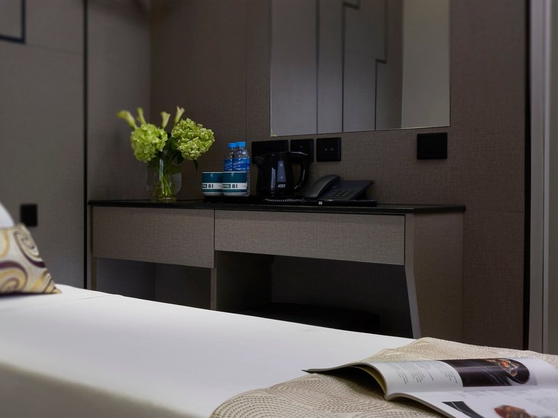 So wohnen Sie: Für angenehmes Raumklima in den Zimmern sorgt eine Klimaanlage. Die Zimmer verfügen über ein Doppelbett oder ein Queensize-Bett. Es gibt einen Schreibtisch. Eine Tee-/Kaffeemaschine zählt ebenfalls zur Standardeinrichtung. Ein Bügelset ist für den zusätzlichen Komfort der Gäste verfügbar. Darüber hinaus sind ein Telefon mit Direktwahl, ein TV-Gerät mit Satelliten-/Kabelempfang, ein Radio, ein DVD-Player und WiFi (ohne Gebühr) vorhanden. Im Badezimmer, ausgestattet mit einer Dusche und einer Badewanne, sind ein Haartrockner und ein Telefon vorhanden. Als Besonderheit genießen die Gäste in den Badezimmern Kosmetikartikel und eine Auswahl an Handtüchern.