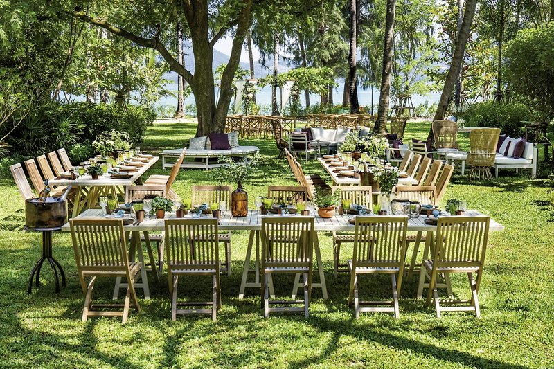 Kulinárske špeciality: The Shack sa nachádza pri bazéne a ponúka jedlá z rýb a morských plodov. Reštaurácia Ta Khai, postavená z recyklovaného teakového dreva, sa nachádza hneď vedľa pláže a ponúka thajskú kuchyňu v rustikálnej atmosfére. V reštaurácii Red Sauce sa môžete najesť s úžasným výhľadom na oceán. Mai, pri bazéne, je salónik s barovou terasou – ideálny na vychutnanie si drinku v uvoľnenej atmosfére.