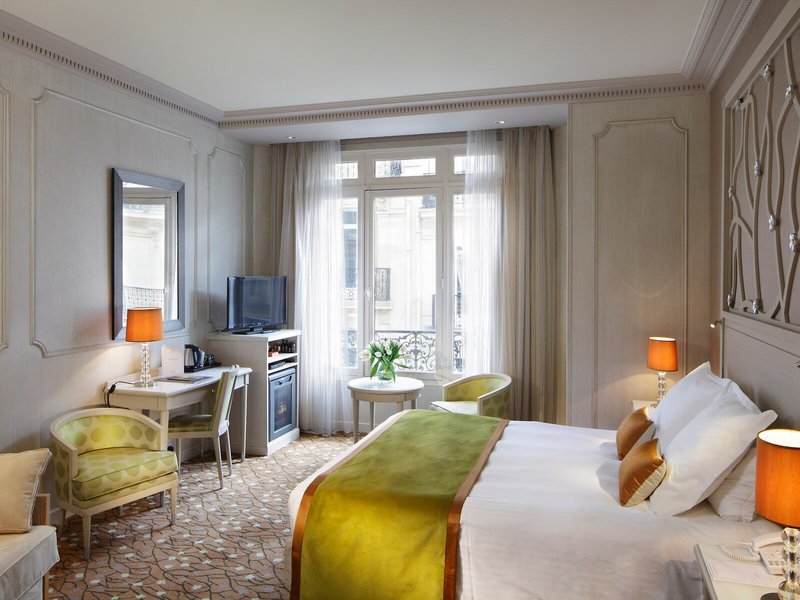 Poloha a okolie Tento mestský hotel sa nachádza na nádhernom a pokojnom mieste, len pár metrov od Champs Elysées a slávneho 8. parížskeho obvodu s ulicami "Montaigne" a "George V". V blízkosti hotela sú veľmi elegantné obchody, vynikajúce reštaurácie, ako aj medzinárodné kiná a známe divadlá. Za menej ako 5 minút chôdze sa hostia dostanú na najbližšiu stanicu metra "Franklin Roosevelt" a na autobusovú zastávku. Centrum francúzskeho hlavného mesta je vzdialené približne 3 km a letisko Paríž Orly približne 30 km.