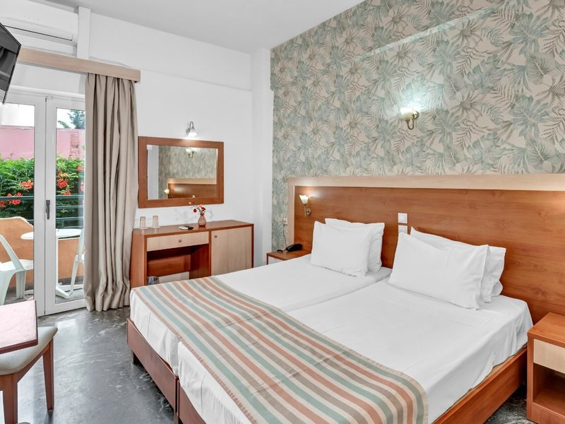 - Double Room (DZX2), Doppelzimmer, Gartenblick, ca. 18 - 19 m², letzte Komplettrenovierung 2014, 2 Einzelbetten (90x190cm), Babybett: gegen Gebühr, Klimaanlage: individuell regelbar, kalt, warm, Safe: ca. 2 EUR, Kühlschrank, Telefon, Internet: WLAN/WiFi, Fernseher: Flatscreen, im Schlafzimmer, deutsches Programm, Sat-TV, Dusche, WC, Föhn, Balkon oder Terrasse: mit Sitzgelegenheit