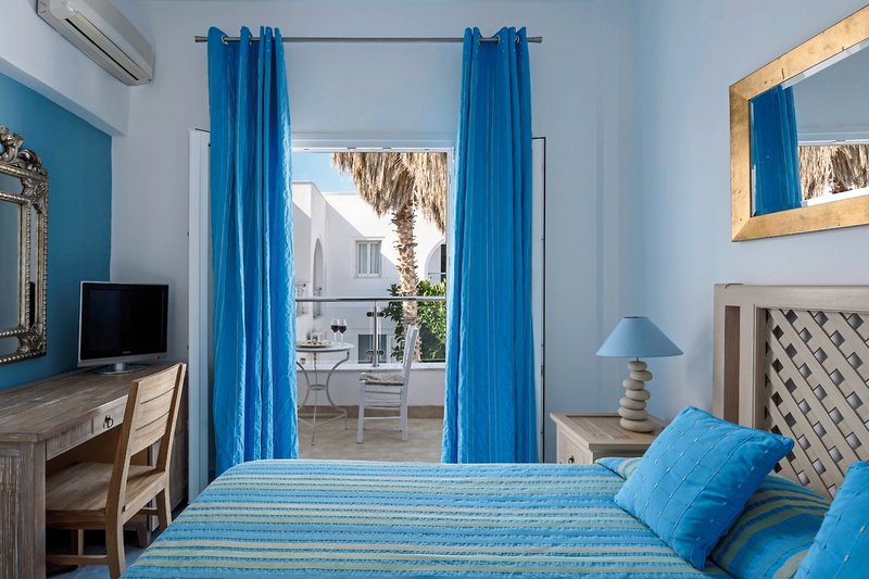 - 16-20 qm, Doppel, Meerblick, kombinierter Wohn-/Schlafraum, Sitzecke, Doppelbett (Kingsize), Dusche, Haartrockner, Klimaanlage, individuell regulierbar, Mini-Kühlschrank, Safe, TV (Sat-TV), Kaffee/Tee, Balkon (möbliert)