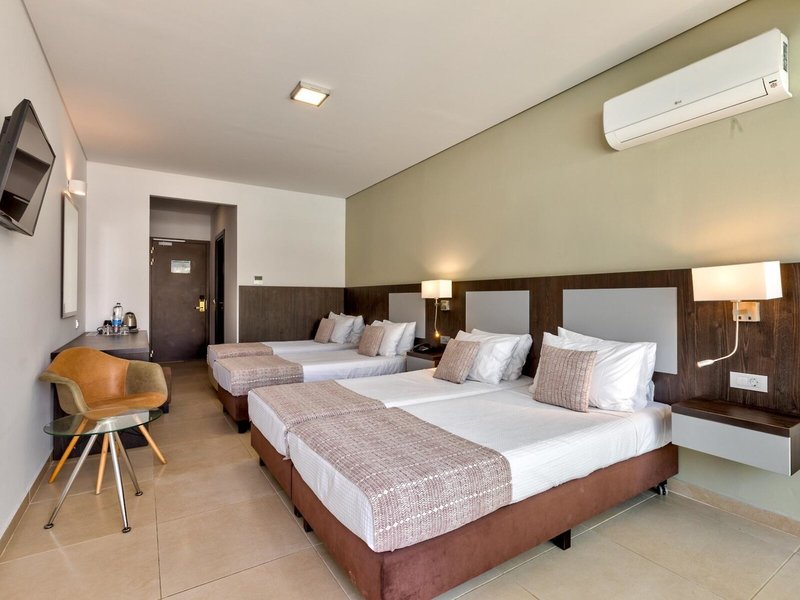 - Family Room (FZX1), Familienzimmer, Nichtraucherzimmer, im Hauptgebäude, ca. 27 - 29 m², Gesamtanzahl der Räume in diesem Zimmertyp: 1, Aufteilung wie folgt: kombiniertes Wohn-/Schlafzimmer, 2 Einzelbetten (90x200cm), 2 Schlafsofas (90x200cm), Babybett, Klimaanlage: ohne Gebühr, individuell regelbar, kalt, Fußboden: Fliesenboden, Safe: ohne Gebühr, Schreibtisch, Kühlschrank: ohne Gebühr, Telefon, Internet: WLAN/WiFi: ohne Gebühr, Fernseher: Flatscreen, Sat-TV, Dusche, WC, Föhn, Balkon: mit Sitzgelegenheit