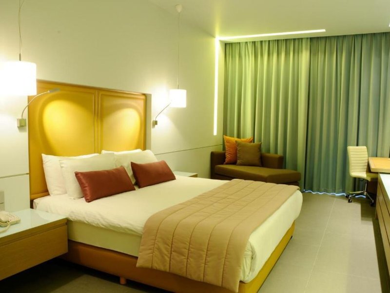 So wohnen Sie: Für angenehmes Raumklima in den Zimmern sorgen eine Klimaanlage und eine Heizung. Ein Balkon gehört zur Standardeinrichtung der meisten Zimmer. Die Zimmer verfügen über ein Doppelbett oder ein Kingsize-Bett. Zustellbetten können angefordert werden. Außerdem sind ein Safe, eine Minibar und ein Schreibtisch verfügbar. Eine Tee-/Kaffeemaschine zählt ebenfalls zur Standardeinrichtung. Besten Urlaubskomfort bieten ein Telefon, Sat-TV, ein Wecker und WiFi. Zu den Vorzügen der Zimmer gehören Hausschuhe. Im Badezimmer, mit einer Dusche und einer Badewanne ausgestattet, stehen für die Gäste ein Haartrockner und ein Telefon bereit. Als Besonderheit genießen die Gäste in den Badezimmern Kosmetikartikel und eine Auswahl an Handtüchern. Es sind auch rollstuhlgerechte Zimmer mit barrierefreiem Bad verfügbar. Die Unterbringung bietet Familien-, Nichtraucher- und Raucherzimmer.