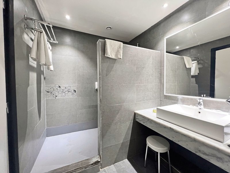 - Saunabereich: Dampfbad, Hamam, Handtücher (kostenfrei), Bademantel (kostenfrei), Badeslipper (kostenfrei)