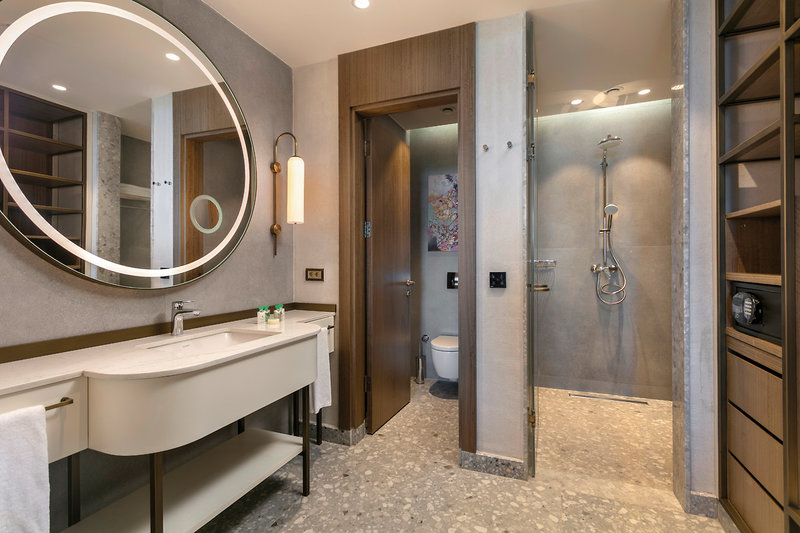 - 61-70 qm, Familien, separates Schlafzimmer, separater Wohnraum, Doppelbett, Sofabett, 2 Bäder, Dusche, WC, Bademantel, Badeslipper, Haartrockner, Kosmetikspiegel, Fliesen, Klimaanlage, zentral gesteuert, Minibar, Auffüllung täglich, Softdrinks, Mineralwasser, Bier, Säfte, Hauswein, Wasser, Snacks, Safe, TV (Sat-TV, Flachbildschirm), Wasserkocher, Espressomaschine, Kaffee/Tee, Balkon (möbliert), hochwertige Badartikel